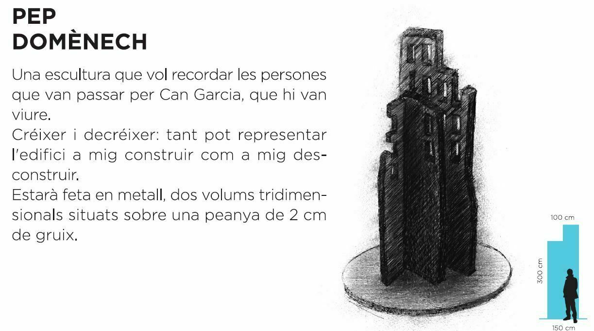 En Pep Domènech presenta una escultura que vol recordar les persones que van passar per Can Garcia, que hi van viure.